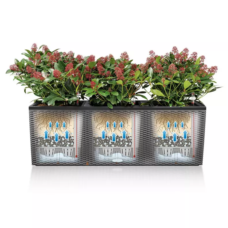 TRIO Cottage is a versatile trough planter with interchangeable planter liners and an optional trellis that is not only perfect as a patio divider or privacy screen but also for growing your own fruits and vegetables. The optional TRIO pedestals are the perfect addition.