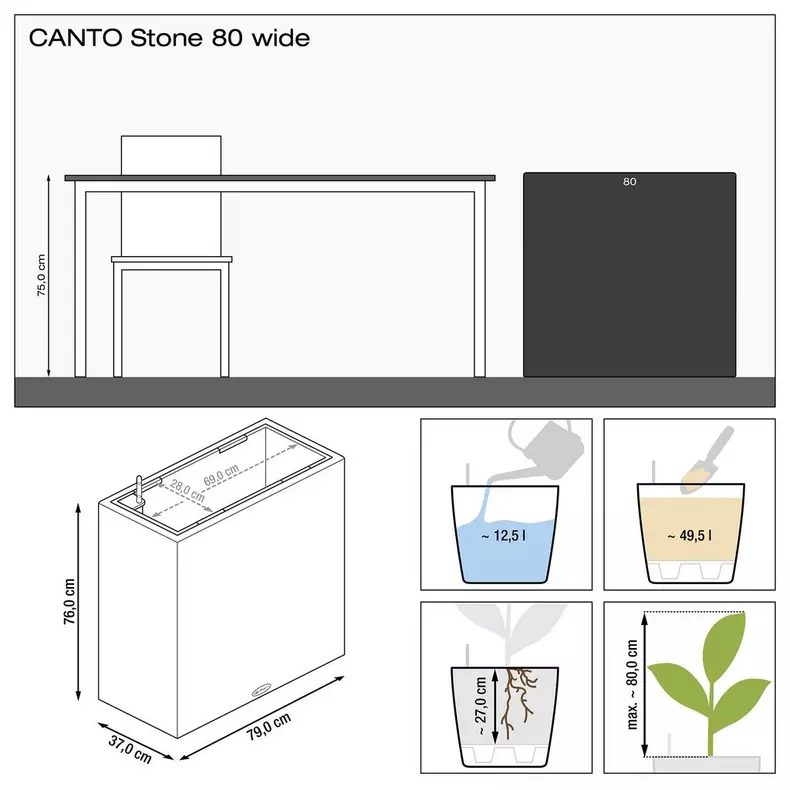 CANTO Stone wide is a modern design element that separates the terrace from the garden and also protects it from any curious glances from the neighbours. With its natural stone look, the planter blends unobtrusively into the overall look of the area around the house and goes perfectly with contemporary architectural styles, whether minimalism or mediterranean.